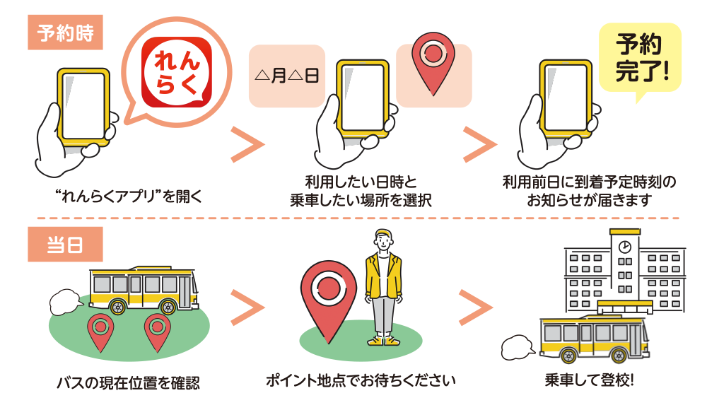 当校では"れんらくアプリ"を使用して送迎の予約やお知らせ通知が届きます。
