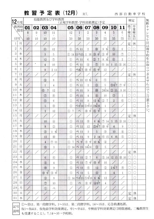 教習予定表12月